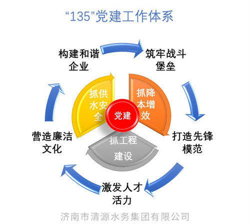 ? ? ? ? ?濟(jì)南市清源水務(wù)集團(tuán)堅持以習(xí)近平新時代中國特色社會主義思想為指導(dǎo),堅決貫徹落實習(xí)近平總書記對山東、對濟(jì)南工作的重要指示要求,踐行初心使命,提振奮斗精神,堅持穩(wěn)中求進(jìn)、勇毅前行、攻堅克難,高效統(tǒng)籌推進(jìn)安全供水中心任務(wù),聚力工程項目建設(shè)。集團(tuán)黨委著力構(gòu)建“黨建賦能+創(chuàng)新驅(qū)動”格局,創(chuàng)新“135”黨建工作體系,做實黨建與業(yè)務(wù)“雙融共促”,以高質(zhì)量黨建為企業(yè)高質(zhì)量發(fā)展掌舵鑄魂。